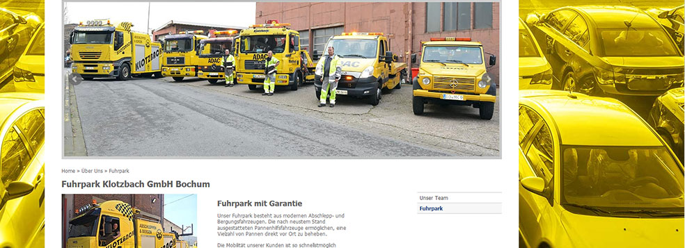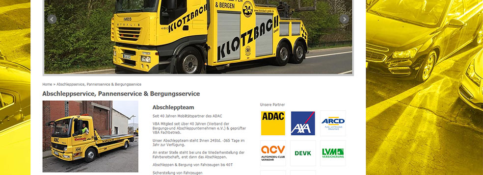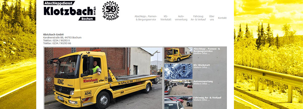 Wir als erfahrene Webdesigner aus Bochum freuen uns besonders, wenn wir mit lokalen Unternehmen zusammenarbeiten dürfen. Ein schönes Beispiel dafür ist unser Projekt mit der Klotzbach GmbH, einem traditionsreichen Abschleppdienst und einer Autowerkstatt mit Sitz in Bochum. Das Unternehmen existiert bereits seit dem Jahr 1968 und ist seit über 50 Jahren rund um die Uhr für seine Kunden da – 24 Stunden am Tag, 365 Tage im Jahr.